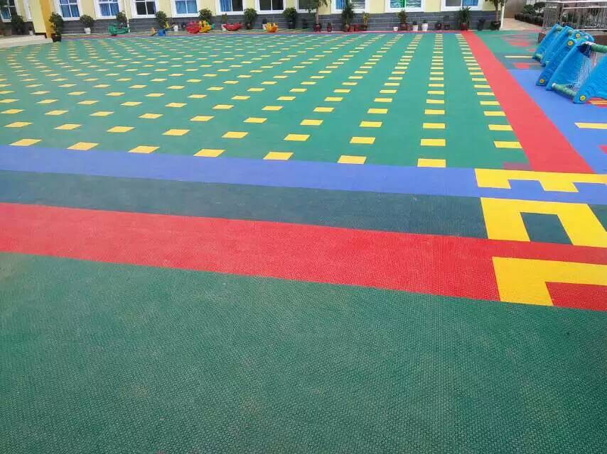 2、根據場地的大小和形狀可以設計豐富多彩的圖案,如跑道,做操需要的站位點,小型的籃球場,足球場等,功能性和色彩兼備,所以備受老師和小朋友的喜愛。